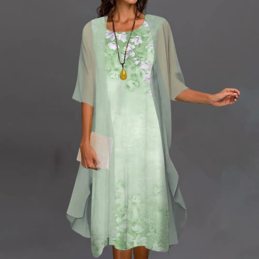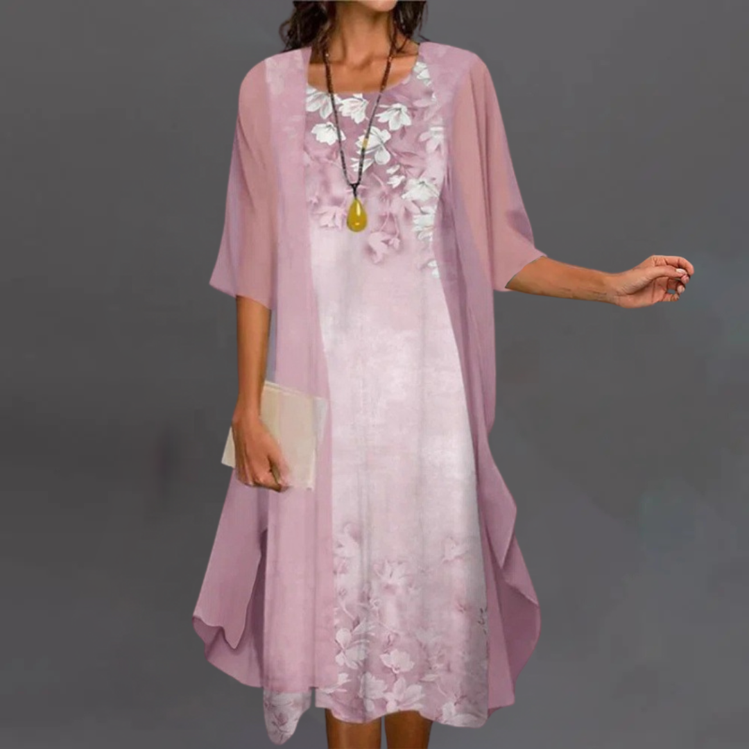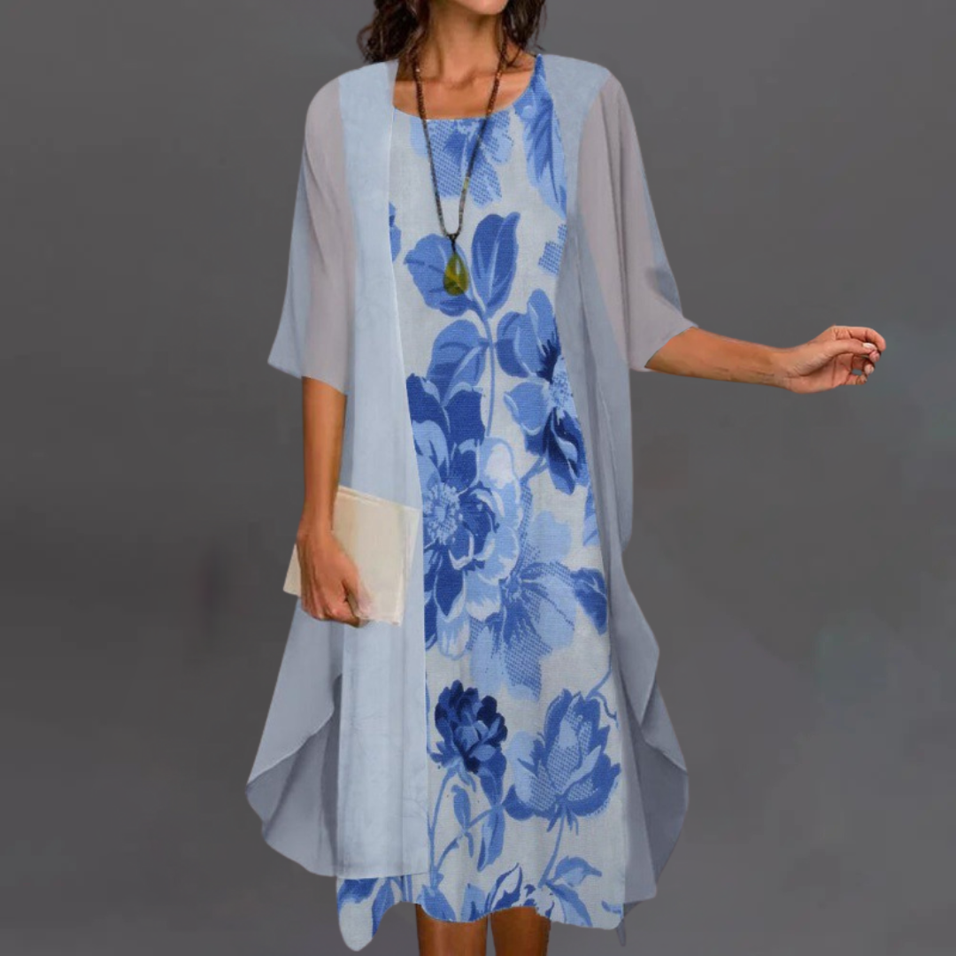 Irena | Elegantiškas gėlių komplektas – suknelė & kardiganas