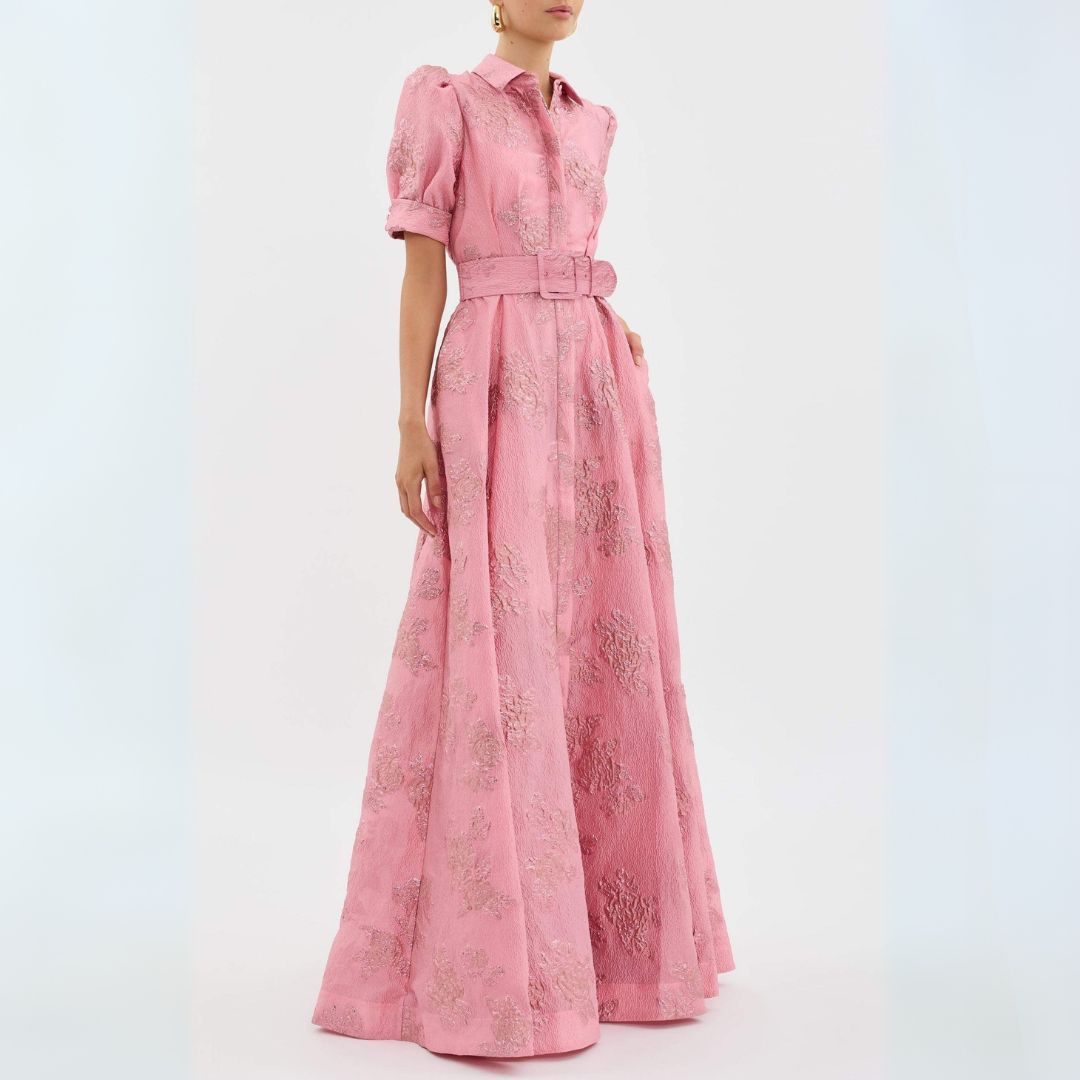 Laurén | Rožinė maksi suknelė su siuvinėjimais