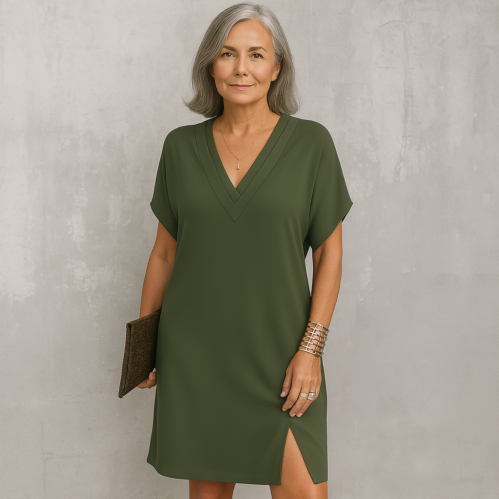 ✔ Viliojantis kirpimas – V-įpjova ir laisvas kirpimas sukuria nuostabiai subalansuotą siluetą, kuris vilioja kiekvienam figūros tipui.
